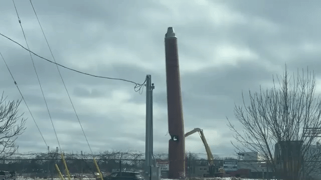 Enraged citizens are appalled by this turn of events, demanding that the smokestack be reconstructed before it is redemolished with a proper permit.